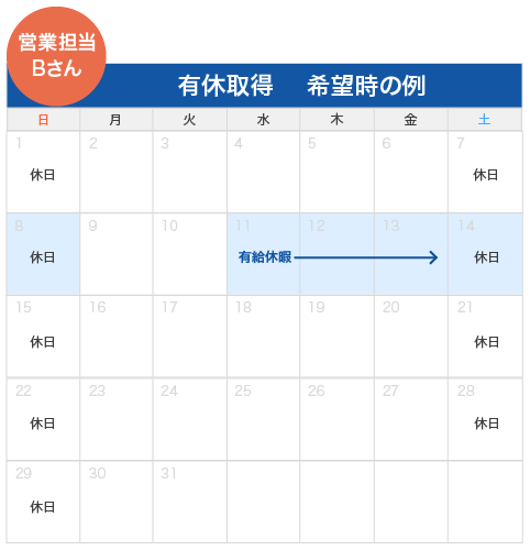 → 営業担当は、ゴールデンウィーク間の平日2~3日有給休暇取得を義務としています。ゴールデンウィーク時に利用しなかった分は、希望する平日に充てて土日と合わせた連休とします。